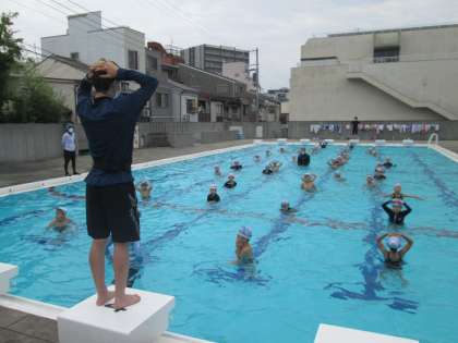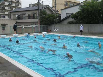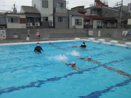 後半はビート版を使い、け蹴伸びの姿勢やバタ足の練習もしました。7月に入って気温もグングン上がってきたので、プールに入って泳ぐのはとても気持ちよさそうです。