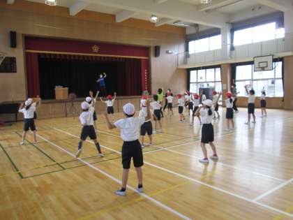 ダンスの振り付けではキックするところや、手を大きく振り上げるところ、声をころえるところなど、中学年らしい元気いっぱいの動きがあります。子ども達は繰り返し練習するうちにどんどん振り付けを覚えていって、みんなで揃えてとても楽しそうに踊っていました。