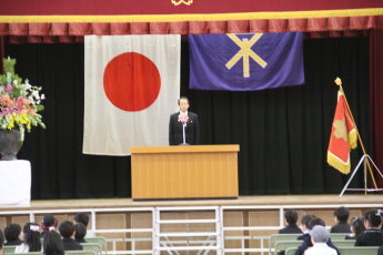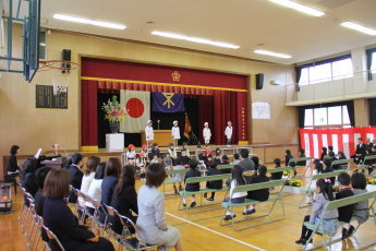 本日、第89回入学式が行われました。6年生のお兄さん、お姉さんに手をひかれて新1年生の子ども達が会場に入場しました。みんな、きらきらの笑顔で壇上に立ち、小学生になった喜びを感じているようでした。
