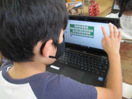 子ども達が使用している一人一台端末(ノートパソコン)に、2学期からデジタルドリルのソフトが導入されました。国語、算数、理科、社会、英語の5教科で全ての学年の問題に取り組むことができます。