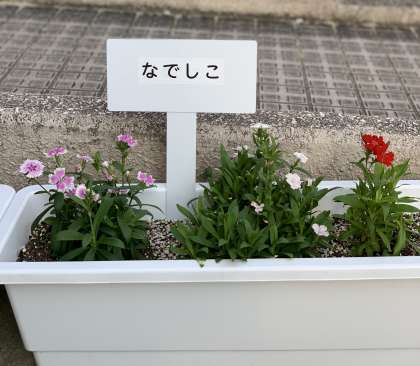 PTAでも、何かお手伝いが出来ないかとお声掛けした所、ネームプレートのラベルがご希望でしたので、テプラで作成しました。また、秋のお花が楽しみです。