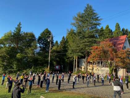 おはようございます。昨夜はみんなしっかり眠れたようです。清々しい朝です。ラジオ体操をして、今日の予定を確認しました。朝食も昨夜同様マナーよくいだだきました。次はいよいよ山登りに挑戦します。