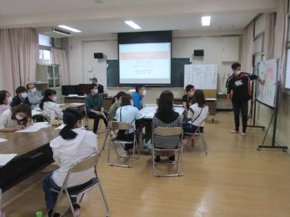 放課後の研究討議会では、今日の4年生の研究授業をもとにボール運動の授業づくりについて話し合いました。スポーツの得意な児童だけでなく、運動を苦手に思っている児童も積極的に動いていた様子から、ふだんの4年生の仲間づくりの成果が感じられたという感想が多くありました。また、より児童の思考力や判断力を養うためには、どのような指導法や授業展開に工夫があるかについて、いろいろなアイデアを出し合って深めました。