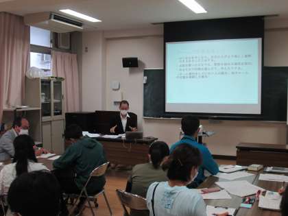 講師としてお招きした西中島小学校の小坂校長先生からは、授業者が体育の授業づくりにおいて持つべき視点と、工夫の仕方を実践例を交えて教えていただきました。