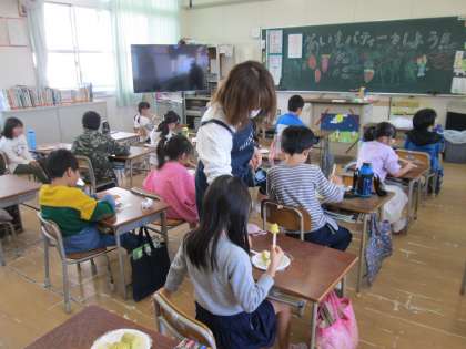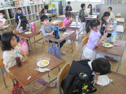 担任の先生がお塩やお砂糖、バターも用意してくれたので、紙皿にそれを分けてもらって焼き芋につけて楽しんでいる子もいました。