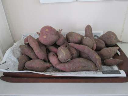 23人で焼き芋パーティ-をしたというのに、後ろのロッカーの上には学習園で掘ったサツマイモがまだ山積みです。今年も大収穫の秋だったようですね。