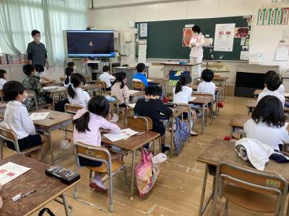 2年生の教室で歯みがき指導を行いました。