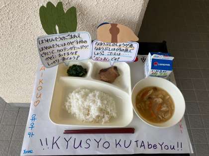 今日は、「なまりぶしのしょうが煮、なめこのみそ汁、ほうれんそうのごまあえ、ごはん、牛乳」でした。