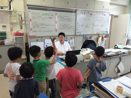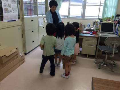 校長先生や教頭先生、管理作業員さん、事務主事さん、養護教諭の先生とお話ができて、とてもうれしそうな子ども達でした。