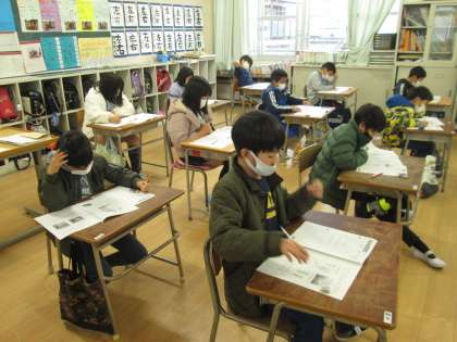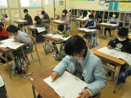 学力経年調査の2コマ目は社会です。4年生の子ども達も真剣な表情で、問題用紙に向かっていました。