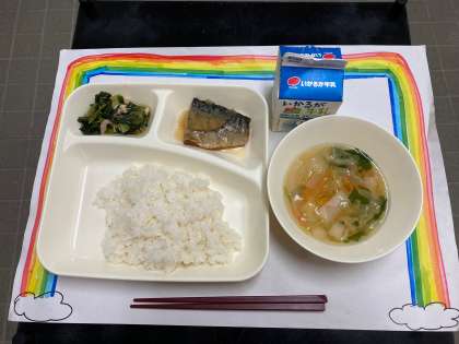 今日は「さばのみぞれかけ、すまし汁、こまつなの煮びたし、ごはん、牛乳」でした。
