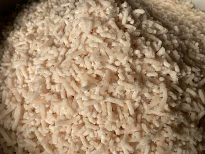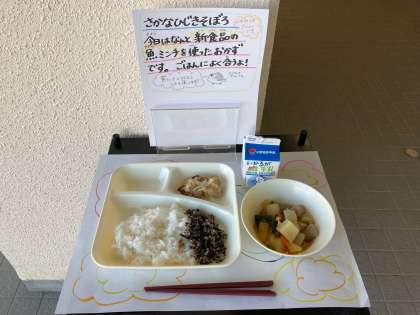 魚ひじきそぼろは、魚ミンチとひじき、青しそで作ったご飯によく合うそぼろでした。魚ミンチは新食品で、スケソウダラをミンチにしたものです。