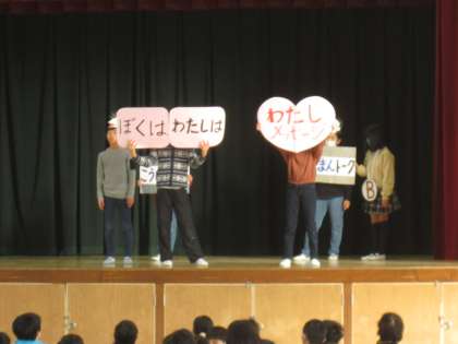 掃除をしていないお友達がいる時、遊びに誘われたけれど断りたいときなど、言葉がきつくなるとお友達との関係が悪くなることがあります。6年生の班長さんを中心に、みんなで「わたしは〜」や「ぼくも〜」など、わたしメッセージをいくつも考えました。