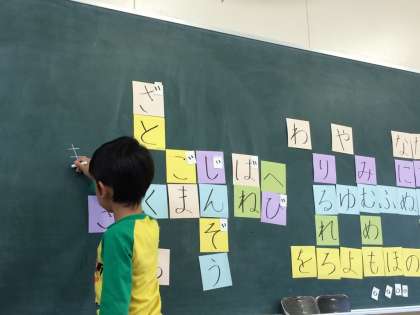 21日のこくごの時間には、「あ」〜「ん」までの五十音のカードを用いて、