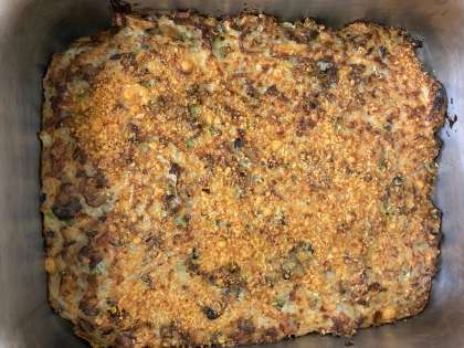 4.耐熱容器に入れ、粉チーズ、パン粉をふり230度25分間焼く。
