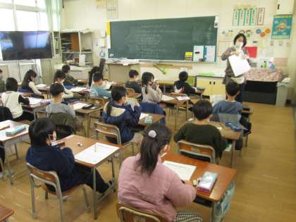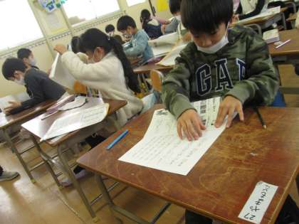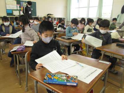 サンタさんよりも早く担任の先生からプレゼントされたのは、冬休みの課題とたくさんのプリントでした。次から次へと配られるプリントを丁寧に角をそろえて折って、どんどん手紙入れの中にしまっていました。