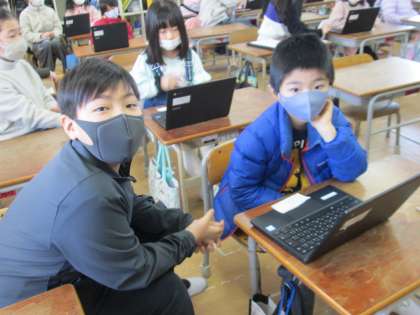 1年生の子ども達も、IDとパスワードの入力には四苦八苦です。カードの数字と記号をキーボードの上で探しては、小さな人差し指でポチ…ポチ…ポチ…、とゆっくり入力していきます。