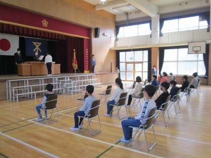 校長先生や教頭先生、そして音楽などの役割のある教職員も参加して、本番を想定したリハーサルです。卒業生である6年生の子ども達はもちろん、在校生の代表として列席する5年生の子ども達も、これまでの練習よりも緊張した様子でした。