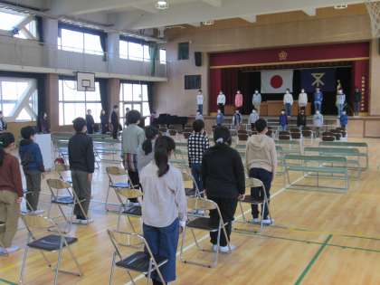 卒業証書を受け取る流れを確認したり、学年で声をそろえて呼びかけをしたりするなど、良い練習となりました。最後まで体調に気を付けて、卒業式にのぞんでほしいと思います。