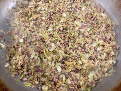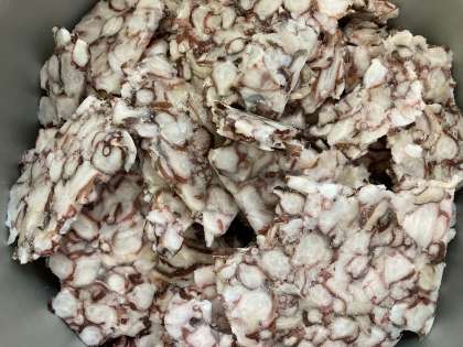 たことキャベツのバジルソテーのたこは、うすくスライスされたもので、かみごたえはありましたが、食べやすい大きさで好評でした。