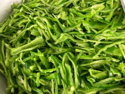 2.フライパンに油を入れ熱し、ピーマン、ちりめんじゃこの順に炒める。