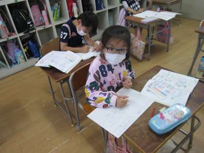 自分で考えた問題ができたら、担任の先生から大きな〇を書いてもらいました。