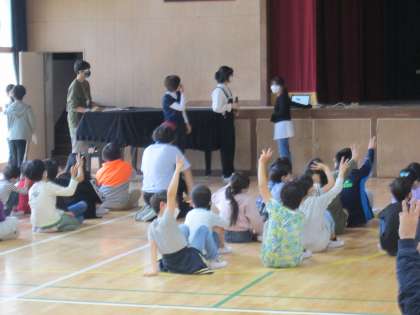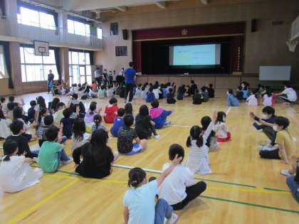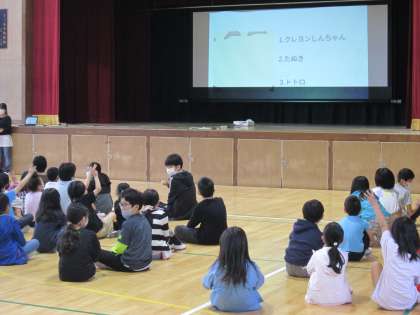 先日、学年をたてわりで編成する『なかよし班』のメンバーが集まったので、今週から木曜日の朝の児童集会はなかよし班で活動します。児童集会では主に集会委員会のメンバーがゲームやクイズを準備して、なかよし班で集まる児童を楽しませてくれます。