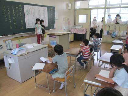 保護者の方にご来校いただき、子ども達が学習している様子を見ていただくのは2020年の秋以来。今回も教室には入らず、廊下からの参観をしていただくということで、保護者のみなさまにはご協力をお願いいたしました。平日の午後にもかかわらず、多数の保護者の方が小学校にお越しくださって、子ども達もたいへん喜んでいました。