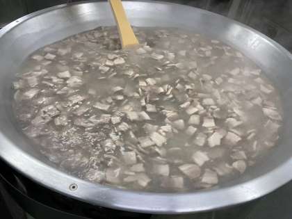ホイコウローは豚肉のバラの部分をしっかり下茹でして、野菜といため、テンメンジャンなどを使った甘辛い調味液で味をつけました。