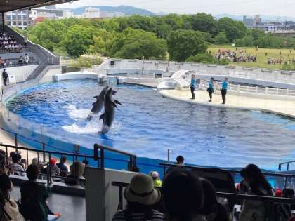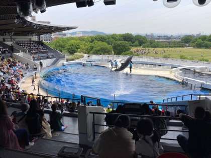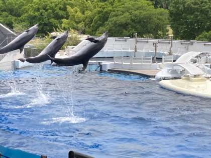 撮影取材の休憩で「イルカショー」を観覧しました。