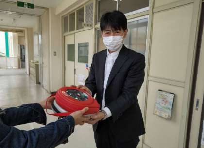 春の遠足のために、十三地域活動協議会から携帯用AEDをお借りしました。