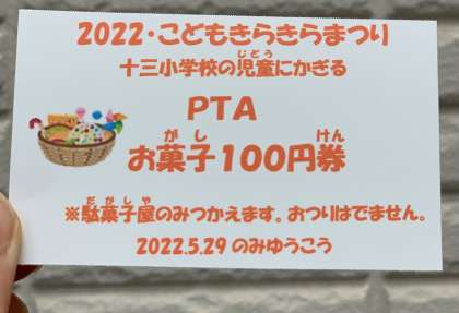 を担当します。十三小学校の児童の皆さんには、PTAより、駄菓子屋さんで使える「お菓子100円券」をプレゼントしますので、ぜひご参加ください。たくさんの楽しいイベントが待っています!