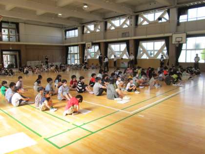 昨年、一昨年はこの時期に緊急事態宣言が出ていたために、実施することができませんでした。そのため1年生だけでなく、2年生と3年生の子ども達にとっても、なかよし集会は初めての行事です。なかよし集会と聞いて首をかしげる子ども達に、高学年のお兄さんとお姉さんがどんなことをするのか優しく教えてあげていました。