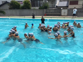 今日、2年生と5年生が一緒に交流プールをしました。2年生と5年生がペアになり、シャワーを浴びるところから一緒に活動しました。そのあとは、5年生が2年生をおんぶして歩いたり、じゃんけん列車をしたり、5年生が2年生に「けのび」の仕方を教えたりしました。とても良い天気に恵まれた中で普段あまりない交流の時間を楽しんで過ごしました。終わった後はみんなニコニコ笑顔で「たのしかったぁ」という声も聞こえました。