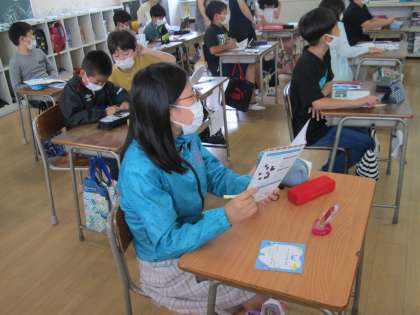5年生の子ども達が、『第79回 全国小学生歯みがき大会』に参加しました。学校医の先生にも来ていただき、まずはビデオで歯肉炎について学習しました。健康な歯と歯肉炎になった歯の映像を比べて、歯肉炎になると歯茎が赤くなって、ぶよぶよと膨らんでくることを教えていただきました。