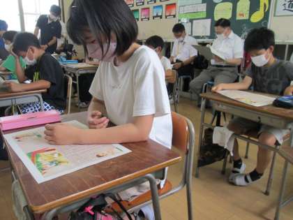 5年生の子ども達はよし子さんとえり子さんの日記から、二人がすれちがったのはどうじてなのか、二人に足りなかったものは何かについて考えました。「二人とも相手の話をちゃんと聞こうとする態度が足りなかった。」や、「自分のことを伝えようとする気持ちが足りなかった。」、「相手を許そうとする気持ちがあれば良かった。」などの意見が子ども達から発表されました。