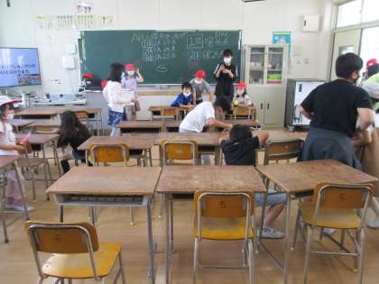 (下)5班 宝探し(部屋のあちらこちらに隠された金の折り紙をさがせ。)