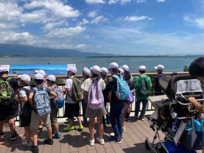 琵琶湖に住む生き物、水との暮らし、琵琶湖の歴史等など、事前の学習を生かして見学しています。