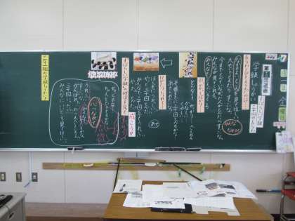 3年1組で『学級しょうかい』という教材を使い、道徳科の研究授業を行いました。『学級しょうかい』というお話は、子ども達が長縄跳びの練習を積み重ねて目標を達成し、その様子が校内放送で紹介されるのを真剣に見つめる姿から、心を一つにして頑張る学級の一体感に気づく教材です。