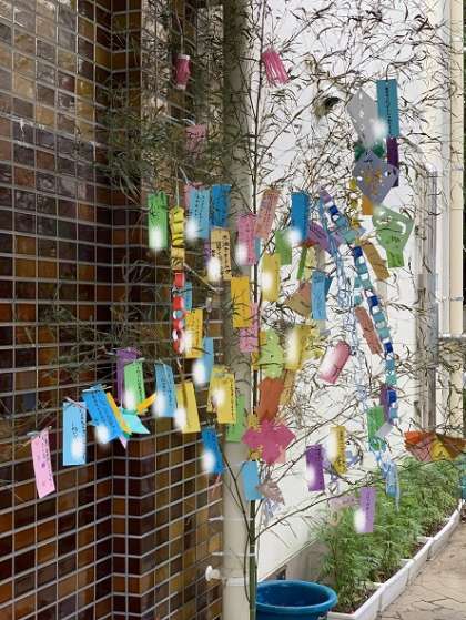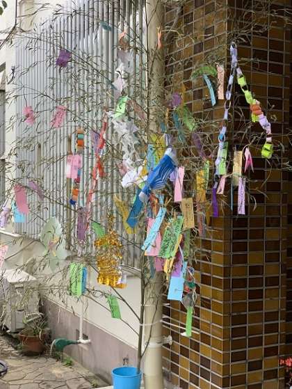 子どもたちが、思い思いに短冊に願い事を書き、折り紙で飾りも作ってくれました。