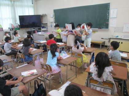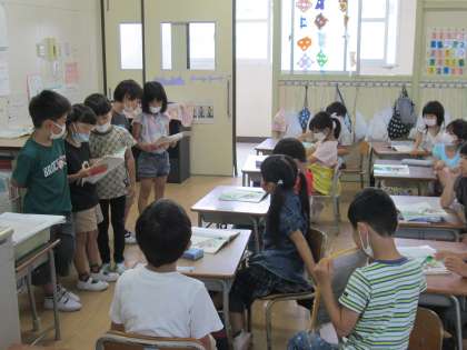 グループの音読を聞いたお友達は、「みんなで引っ張るときに、声をそろえて力いっぱい引いてる感じがした。」や、「読むところの順番を決めて、上手につながって読めていた。」など、音読の良かったところや工夫していたところを発表しました。