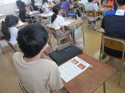 2限目、教育委員会から講師の先生にお越しいただき、6年生の児童に歯みがき指導をしていただきました。