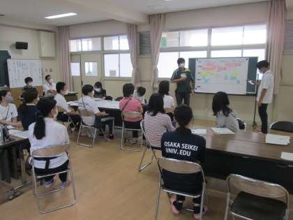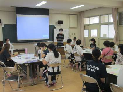 討議会の始めには授業者が教材研究をする中で考えたことや工夫したこと、また今回の授業をふりかえっての感想などを発表しました。その後、グループに分かれての討議では、授業の成果や見えた課題、また改善しるためのアイデアなどが活発に意見交換されました。