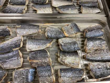 今日は「さごしの塩焼き、豚肉と野菜の煮もの、オクラのいためもの、ごはん、牛乳」でした。さごしは出世魚で大きくなるとさわらと名前が変わります。ほんのり塩味でごはんによく合いました。煮ものは豚肉、じゃがいもなどが入ったボリュームのある煮ものでした。それに、夏が旬のオクラを使ったいためものの組み合わせでした。