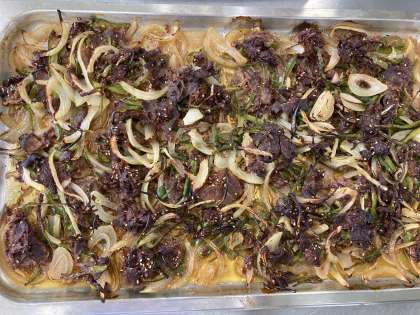 プルコギは、甘辛の味付けはごはんによく合いました。トックは、韓国のお餅が入る、もちもちとした食感が人気がありました。さっぱりとしてシャキシャキとしたもやしはさっぱりとしておいしかったです。