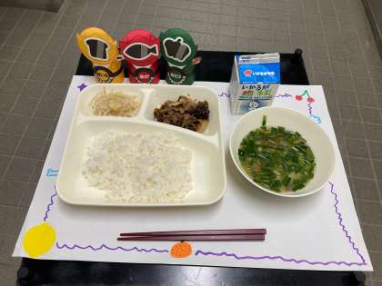 今日は「プルコギ、トック、もやしの甘酢あえ、ごはん、牛乳」でした。