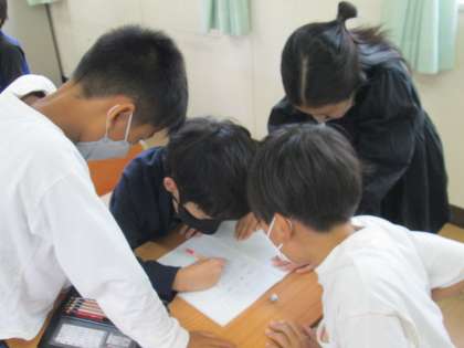 担任の先生から「1000gの重さを1kgと表すことができます。」と教えてもらって、自分たちのランドセルをキログラムを使って書きかえました。