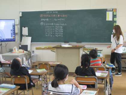 kgの大きな重さを表す単位を使うと、すっきりと表せてわかりやすくなることに子ども達は気づきました。