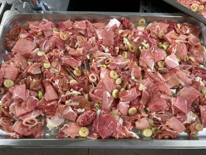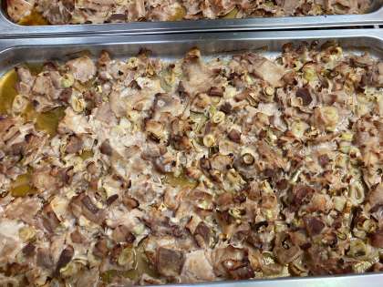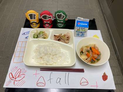 今日は「豚肉のねぎじょうゆ焼き、ふきよせ煮、きゅうりともやしの甘酢あえ、ごはん、牛乳」でした。豚肉のねぎじょうゆ焼きは、ねぎの風味としょうゆの香ばしさがごはんによく合いました。ふきよせ煮は、さといも、れんこんなどを使った、季節を感じる煮ものでした。それと、きゅうり、もやしの歯ごたえの良いさっぱりとした甘酢あえの組み合わせでした。