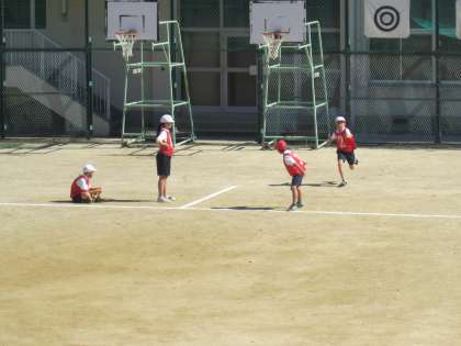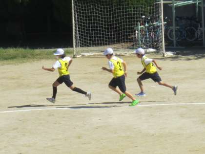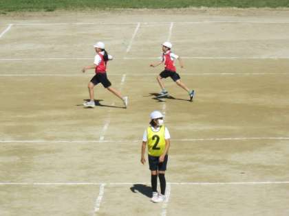 5年生は体育の授業で、リレーの学習をしていました。リレーの面白さと言えば、やはりスピードを落とさずにバトンを受け渡す場面でしょう。